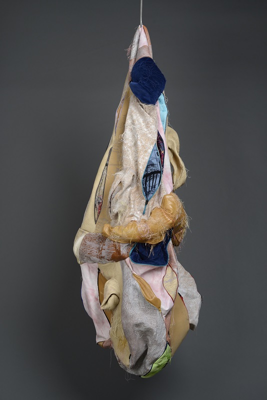 Lou Baker, Nobody 1, 2014, used clothing, found leather, imitation leather, hair, zips, flocking, velvet, stitch, print