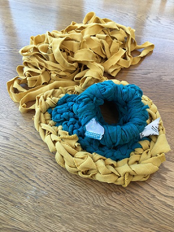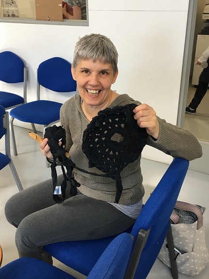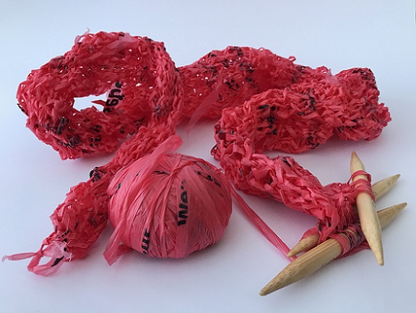 Knitted plastic bags - knitted during the conversation!