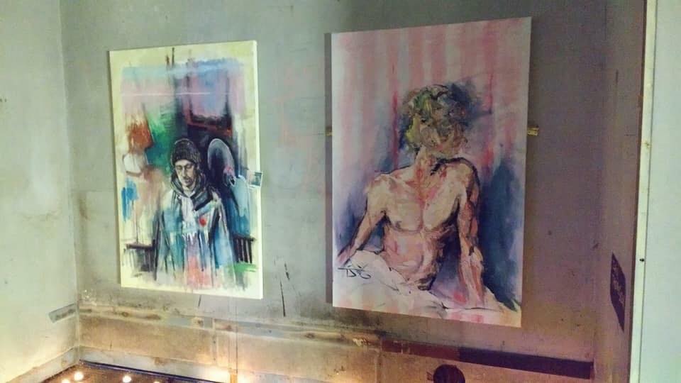 2. One of my Living sculptures in front of one of Clare’s paintings