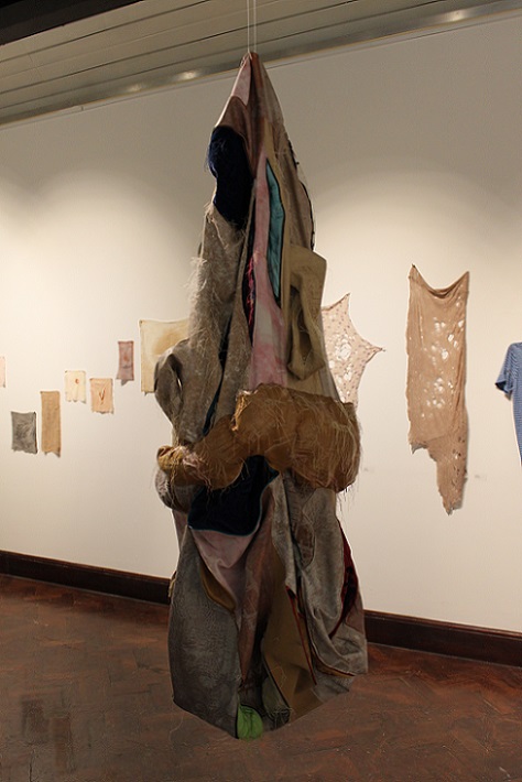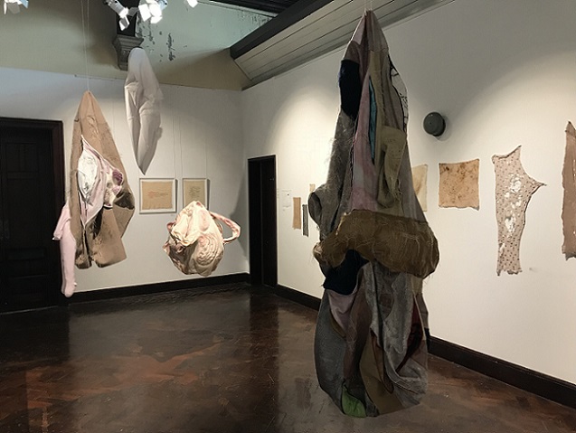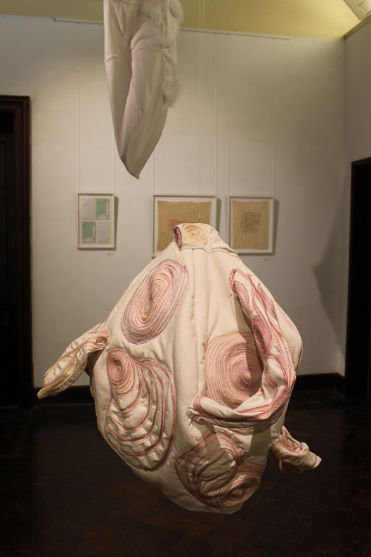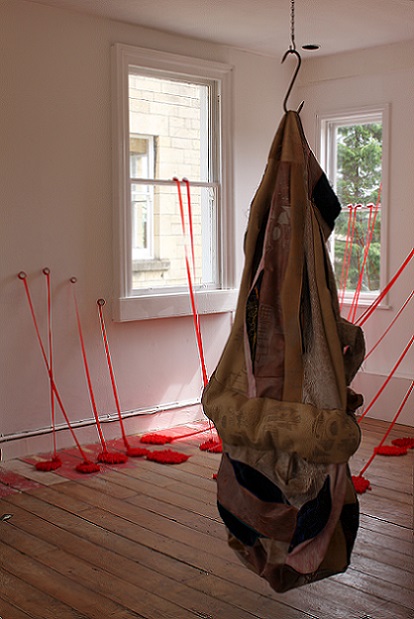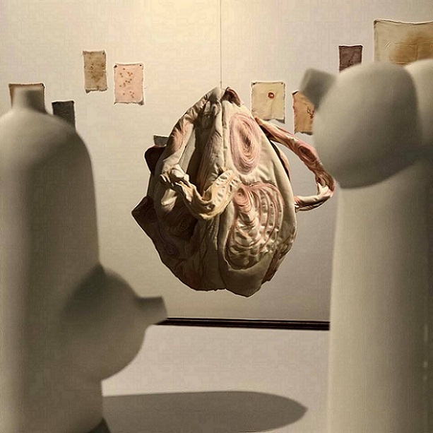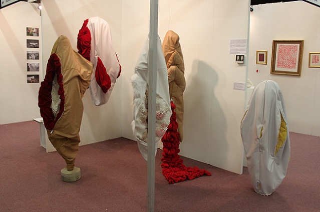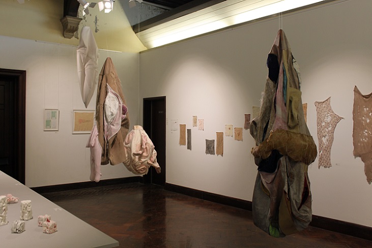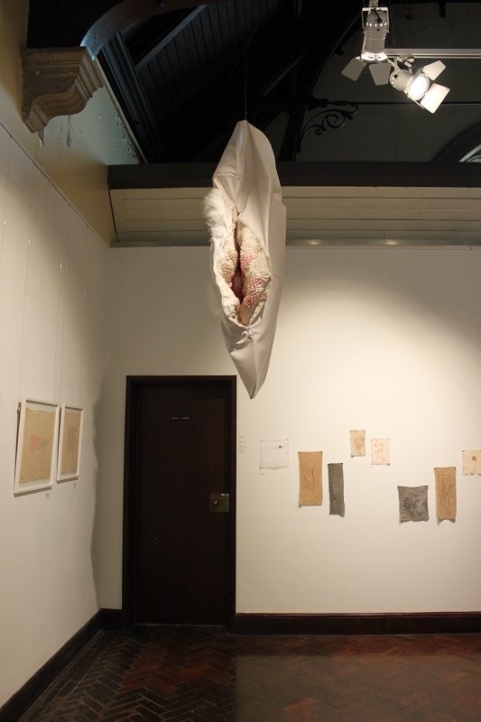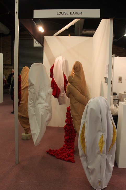 'Memories and the emotions they elicit vary in intensity and clarity; some are public and shared, some are private and hidden. Exploring the gendering of materials, Lou Baker’s soft sculptures excavate the dark side of stitch, revealing and concealing alternative meanings in their folds and surfaces. She creates an uneasy tension in aesthetics by challenging the seemingly benign nature of traditional textile processes and evoking the abject.