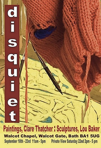 disquiet is an exhibition of paintings and sculptures by Clare Thatcher and Lou Baker, who are showing together for the first time at Walcot Chapel in Bath. Although they use very different materials and processes they recognise similarities in their work and, for this exhibition, they have made some new pieces in response to one another’s work.