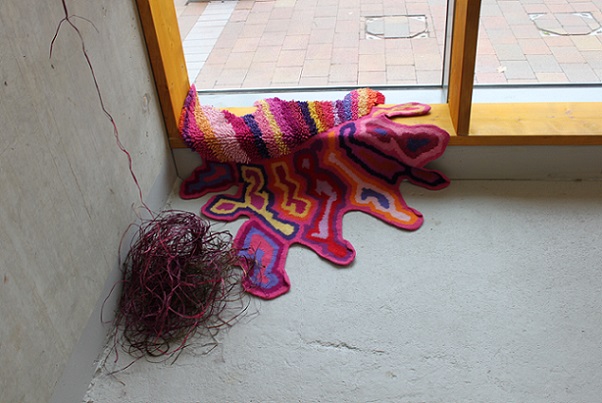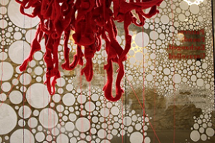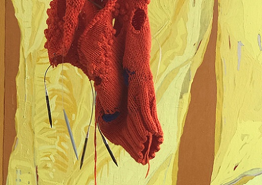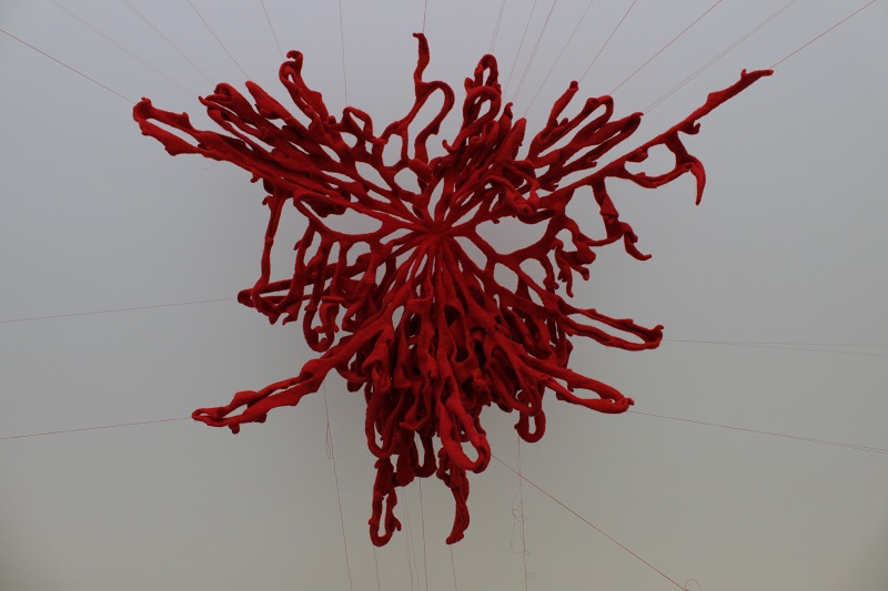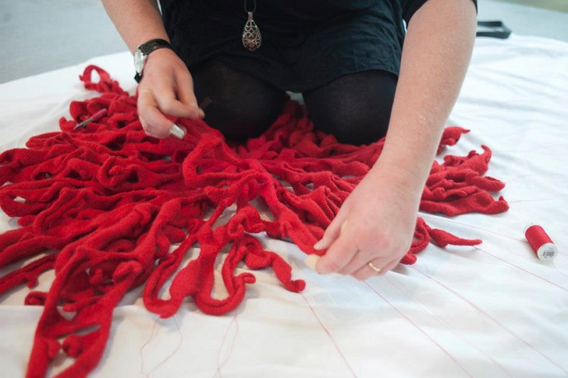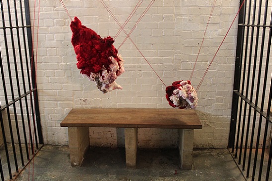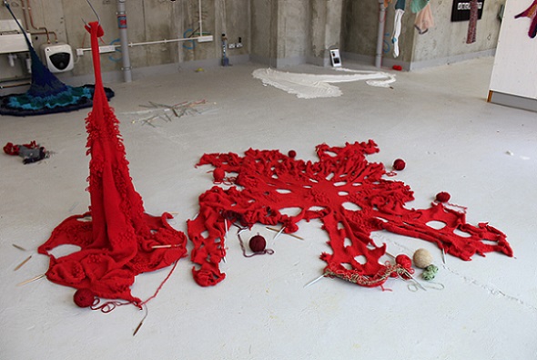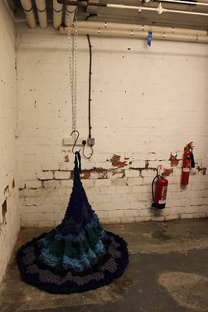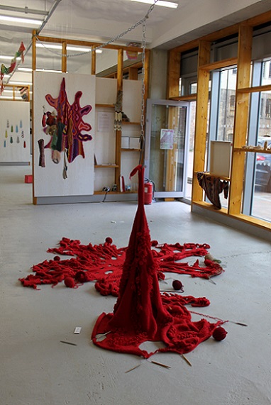 'Knitting is generally regarded as a benign, gendered, functional pursuit, but what happens when the knitter subverts these expectations? Most knitters follow a knitting pattern in order to replicate someone else’s design; a garment, a blanket or an accessory, maybe. What happens when there is no pattern, or rather, when a pattern is established through a pattern of behaviour, or through a stream of consciousness, or when it is led by an unpredictable change in control? And what happens when the knitted piece is abstract, emotive and disturbing?