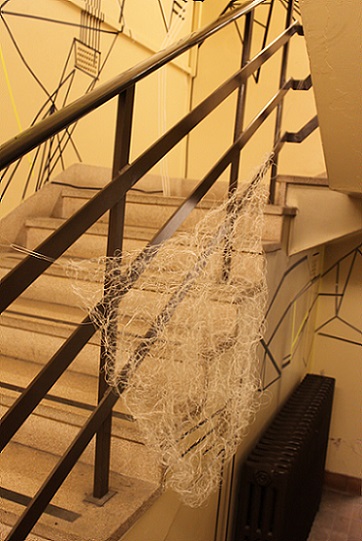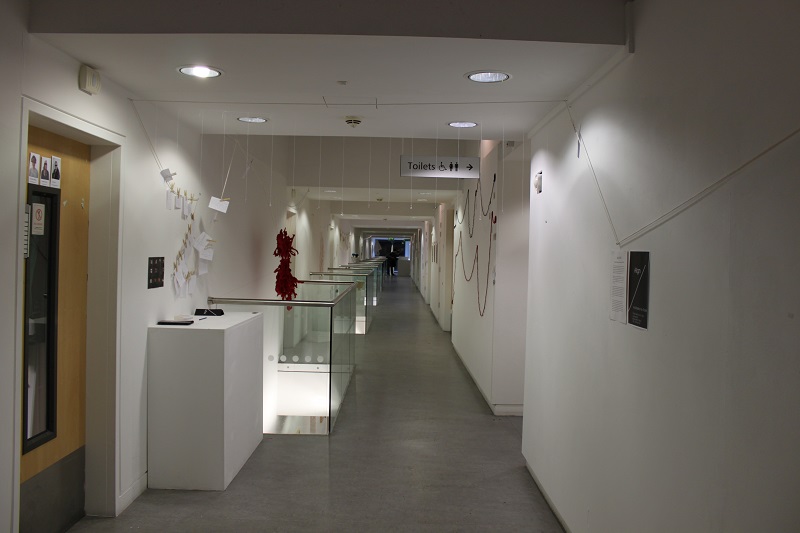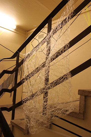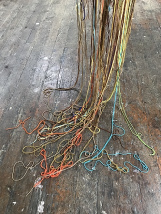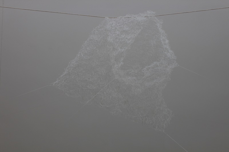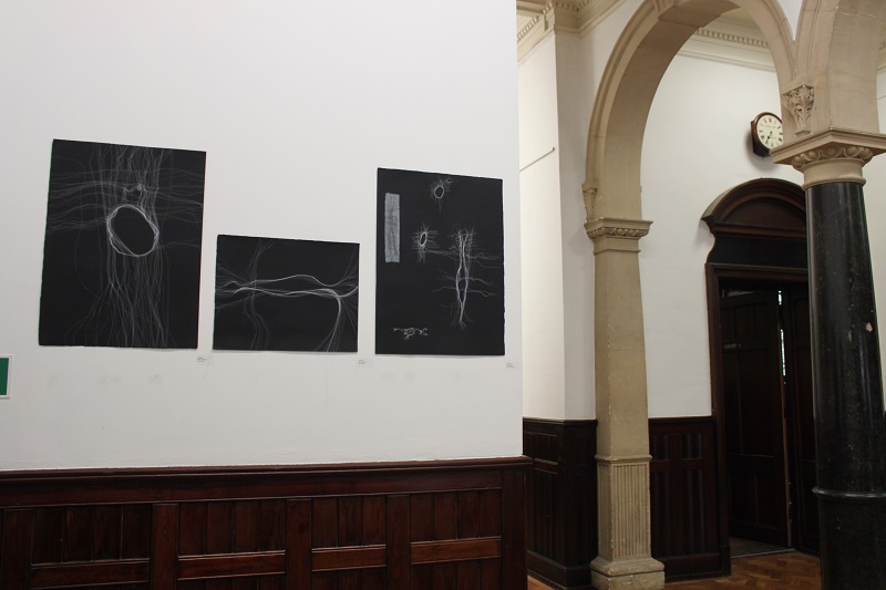The question of what constitutes a drawn line prompted the group to think more about the broader aspects of all things linear, and just how malleable that theme is. Through discussion we realised that however diverse the work within the exhibition, it was possible to play with the idea of ‘line’ and inter-weave a physical presence that would add cohesion to our different approaches. This could be incorporated into individual works or subtly pass them by, adding another dimension as a travel line for the viewer.