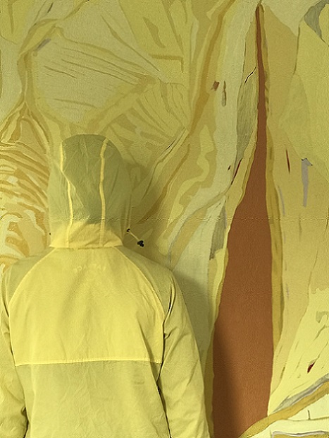 8, 9. Internal monologue, 2018, in front of one of Clare’s paintings