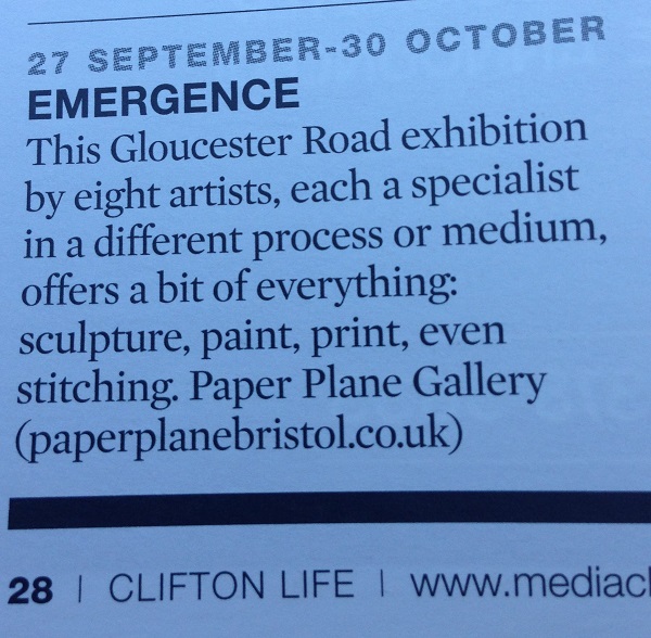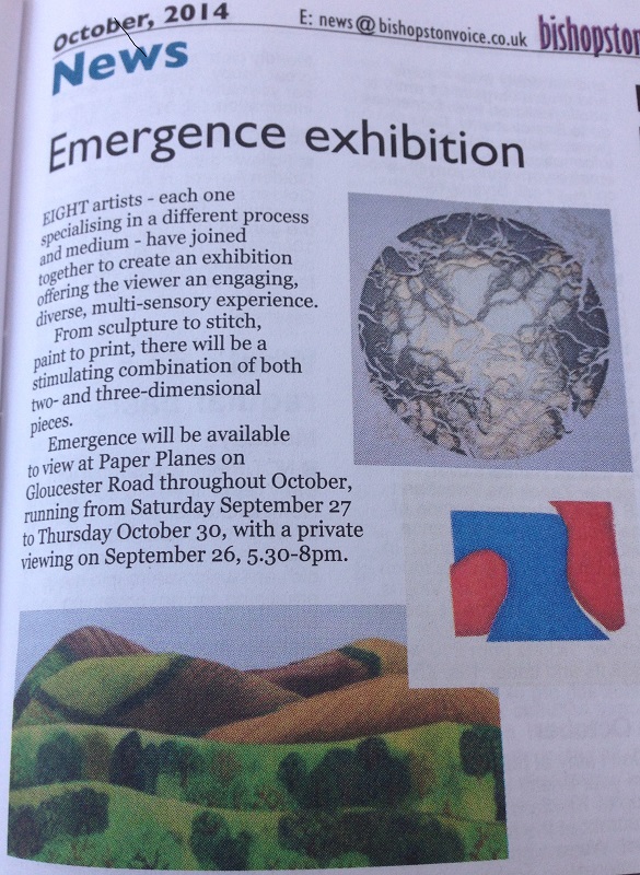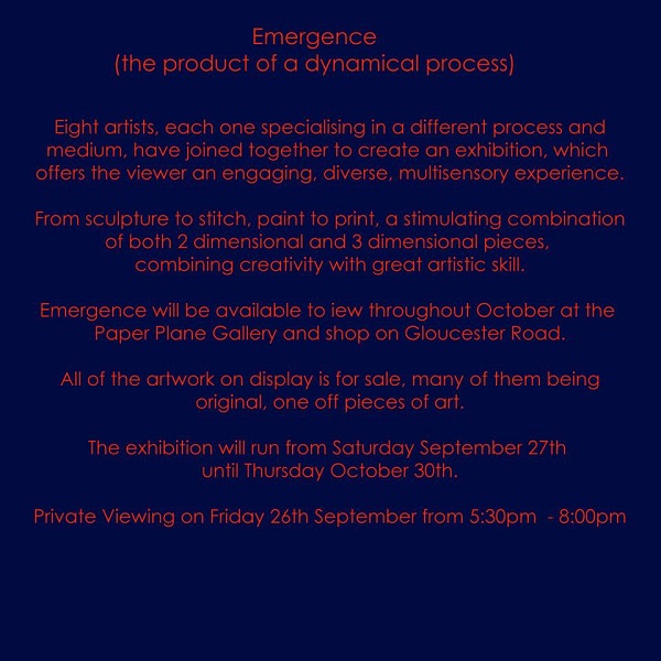 Emergence at Paper Plane Gallery, Bristol, 27th September to 30th October 2014