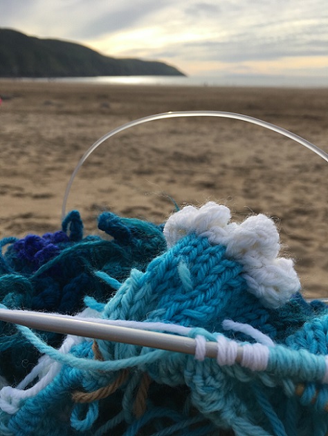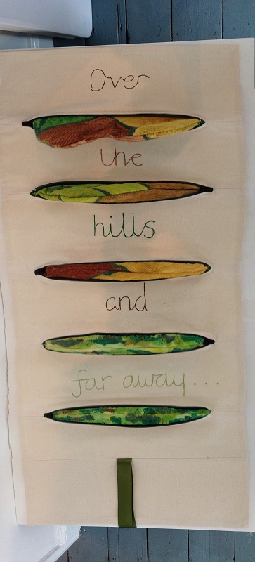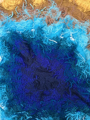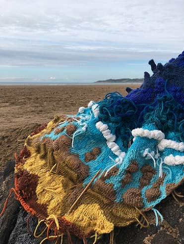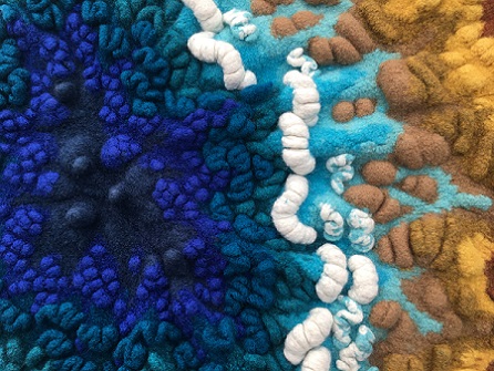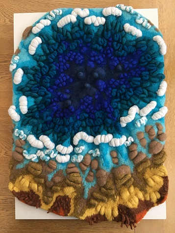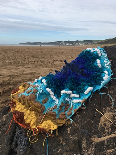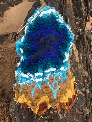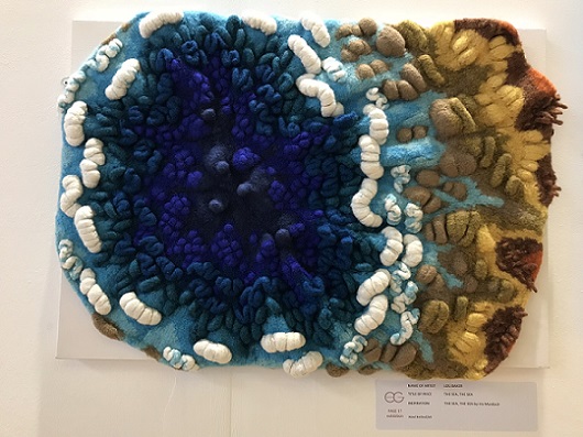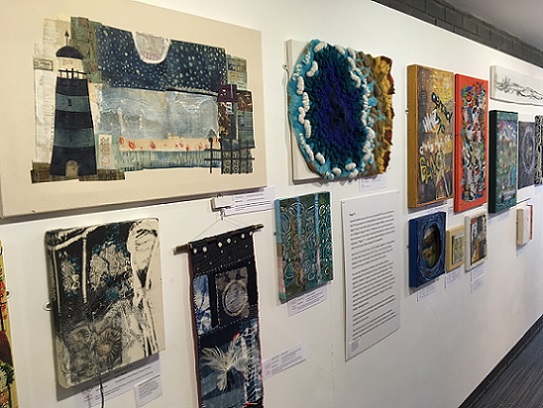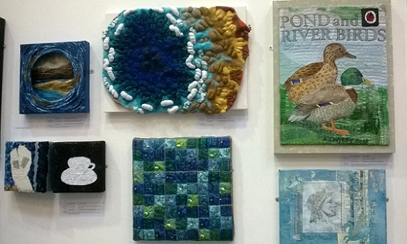 My piece, The sea, the sea, felted hand knitting, centre, installed at Page 17 at Artrix, Bromsgrove. This is the last leg of a year-long tour organised by The Embroiderers' Guild. See below for more details.