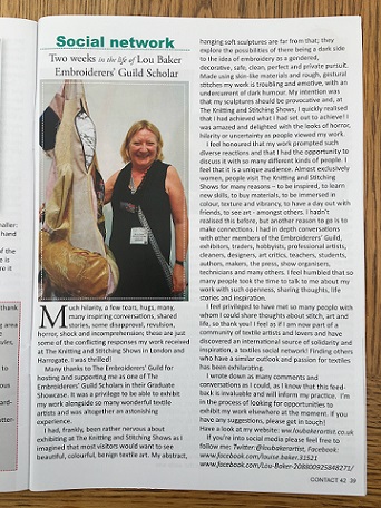Page 17 with The Embroiderers' Guild at Artrix, Bromsgrove, Sept.5th - Nov. 4th, curated by Amanda Smith and Alex Messenger, part of a touring show (see below)