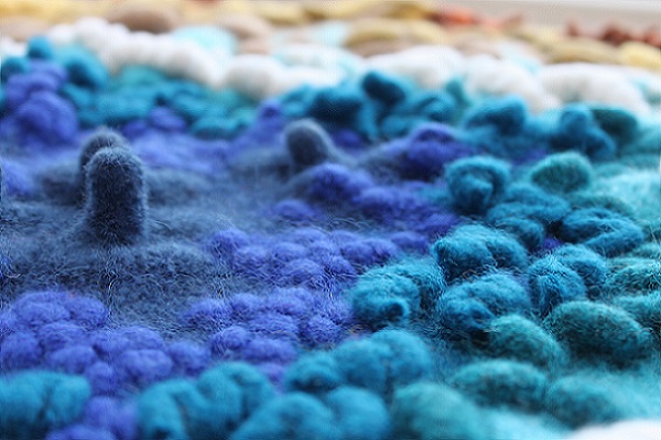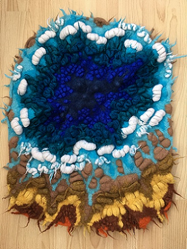 Felting is alchemy; months of slow, meditative work culminates in an unpredictable process which dictates the outcome. This change in control brings a fragility to her work, underpinning her investigations into the dialogue between personal memories and universal themes.’