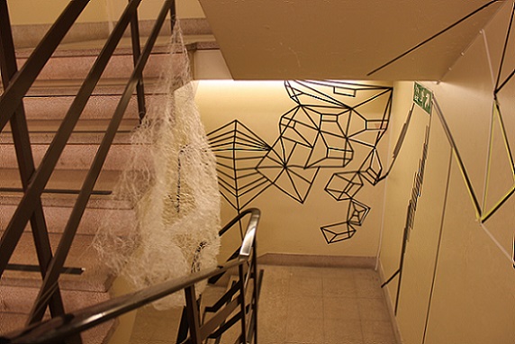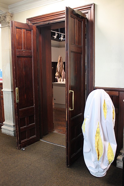 Nobody I, 2014, installed at Cartesian Cut? with Nikki Alford's installation of tape