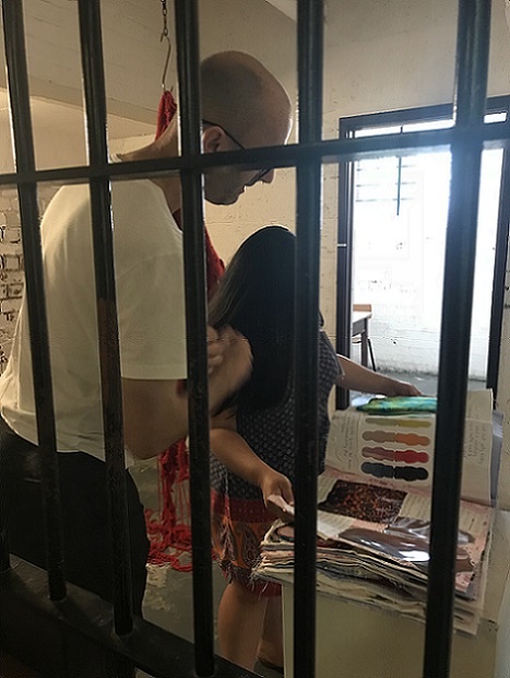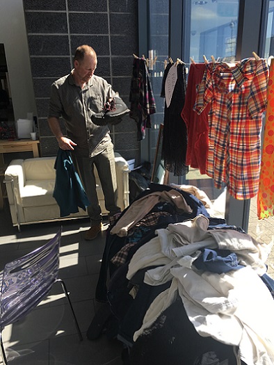 The room itself was adjacent to the main exhibition and only accessible to paying visitors, but there was a re-entry policy whereby one could return as many times as required with that ticket. The room itself was more like a making space than a gallery, and included some beautifully hand crafted furniture etc. It meant, however, that it was quite hard to find a blank wall to take photos! I set up a photo background but decided it wasn't big enough so dismantled it and, in the end, took photos of my participants amongst the other sculptures.
