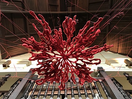 I am so delighted that my hand knitted soft sculpture, Pillar of fire I, has been selected for the RWA Sculpture Open exhibition! It's certainly the only knitted sculpture and the only constructed textile piece in the show. Apparently there were 1100 submissions and just 88 selected and mine is one of them!