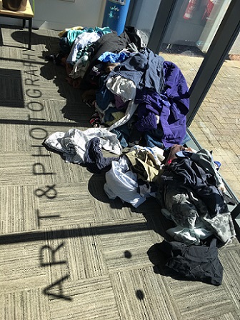‘We came together as a group with the common aim of curating a unified exhibition that would highlight the diverse approach we all have as individuals to making work, whilst holding true to a chore theme. The consideration of the space itself and how as a group we would best make use of it to the advantage of the overall aesthetic was a determining factor in approaching the curatorial aspects of this exhibition.