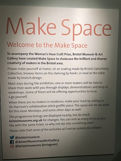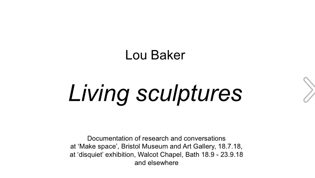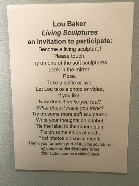 The Make space at Bristol Museum was a programme of day-long exhibitions, events and workshops which ran for the duration of 'The Woman’s Hour Craft’s Prize' from 7th July -2nd September 2018. Local artists and makers were invited to submit proposals and my Living sculptures proposal was accepted to run on the 18th July, from 10-4.
