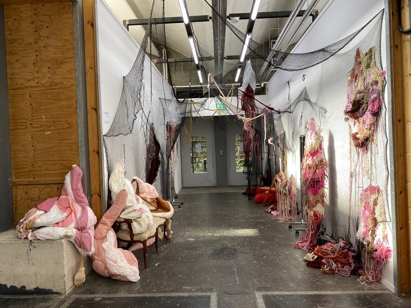 Made flesh 2024 is an installation of all (my) flesh coloured sculptures, knitted and stitched between 2020 and 2023.  They were installed site responsively, with some used netting, as a walkthrough, immersive installation at The Corridor, a test space at Spike Island, Bristol from Sept 10-16 2024, as a showcase at the end of my Dreamtime Fellowship.
