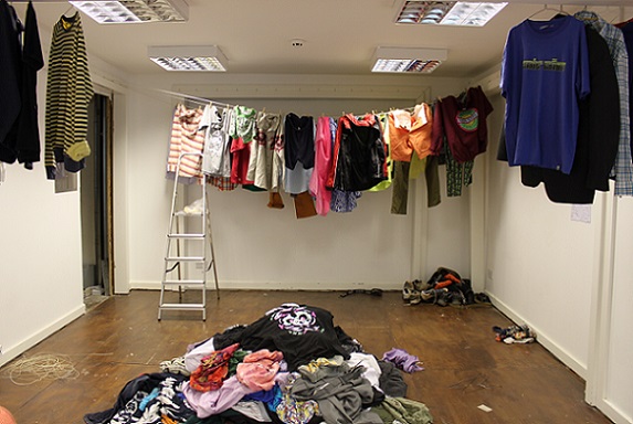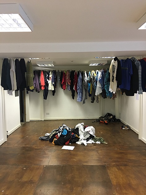 Don’t wash your dirty laundry in public is part of the art work I produced at 'Bodies: a group residency' by Synecdoche. It’s based around a series of temporary installations of used clothing which took place between 1st and 30th September 2016 in an empty shop in a busy shopping area in the centre of Bristol, UK. The space was open to the public for 4 days a week. It took on a life of its own and became part social engagement, part performance but was also participatory, confessional, interactive, and highly conceptual.