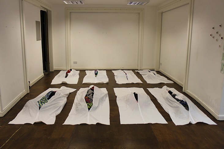 I have, essentially, spent a month hanging out the same clothes again and again in different ways in an empty shop, arranging them in body bags, talking to people, writing down their comments and taking photos. The clothes belong to my family and I’ve been giving them away. It has made me feel very vulnerable at times. I have been making public things that are normally private. I am delighted that it has provoked a range of conflicting responses - attraction, repulsion, horror, hilarity, grief, comfort, understanding and incomprehension, amongst others.
