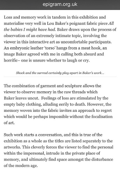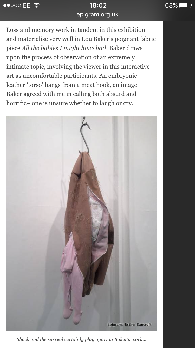 In 2016, All the babies I might have had 2 was selected for 'The Memory of Space - Space of memory' exhibition at Centrespace Gallery, Bristol from. November 24th-30th. It was curated by Jan-Phillip Fruehsorge, director of Fruehsorge Contemporary Drawing Gallery and The Drawing Hub, Berlin. Here are some images, including a review of my work in Epigram, the University of Bristol student magazine:
