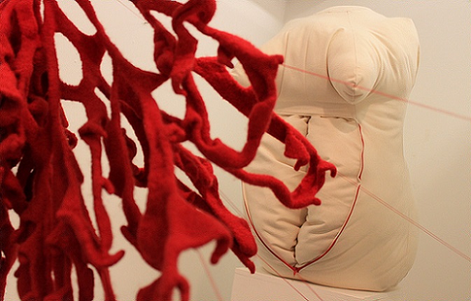 Knitting is a meant to be an easy conversation starter; having to tell people ‘I’m knitting a uterus’ was rather awkward. Sometimes I’d say ‘I’m experimenting with knitting holes’ instead.