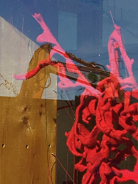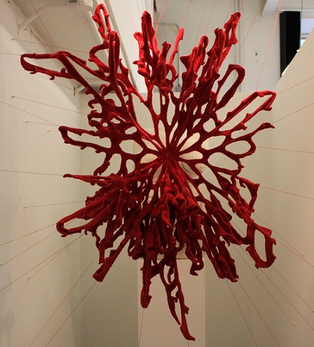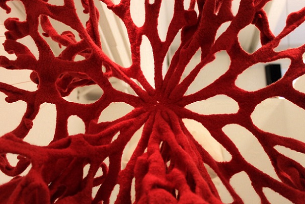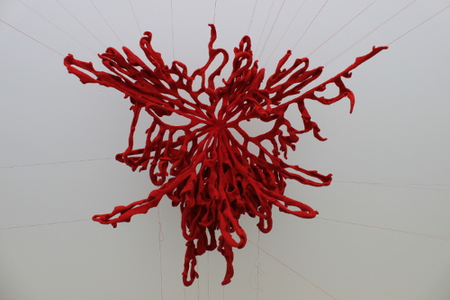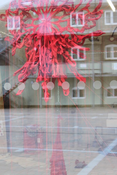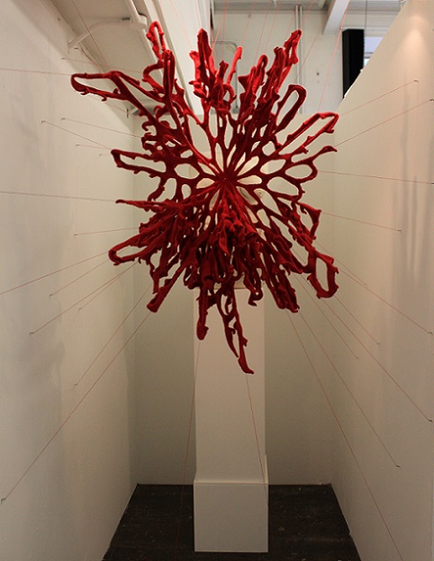 However, since then, I've realised that the red, felted web alone has a bigger impact and I've exhibited it a number of times in various different settings. As with much of my work, I install it site-responsively and it changes form each time. In hindsight, it's probably my first shapeshifting sculpture. (See images 06 -18 below)