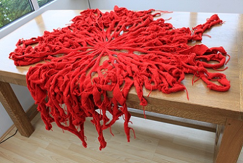 Some people think it’s quite shocking, as knitting is meant to be passive, private and benign. Using knitting to communicate things that are normally hidden creates an uneasy tension. It should be soft, cuddly, functional, but instead it’s hard hitting, difficult, abstract.