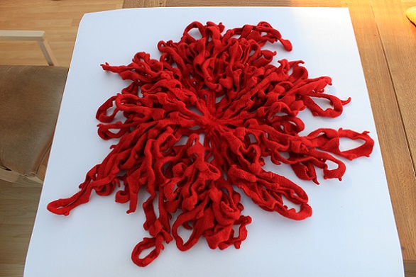 This piece was a first in other ways too. It was my first knitted sculpture and the first significant piece that I felted. It was a very hard decision- to felt or not to felt? Felting is obviously irreversible, the knitting shrinks by about a third and what would it add to this work made over many months? In the end, I decided to felt it and I'm glad I did. It was a transformation!