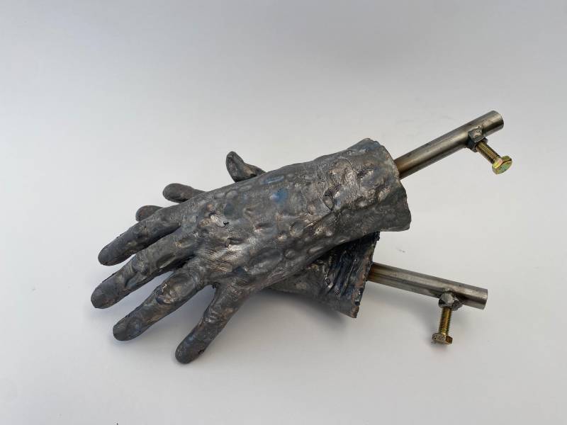 It is one of a series of 5 pairs of lead hands which is part of the modular sculptural ensemble, Parts of me 2021.
