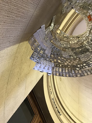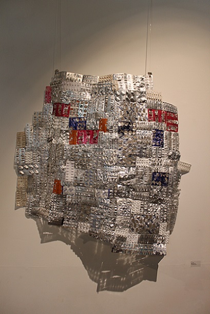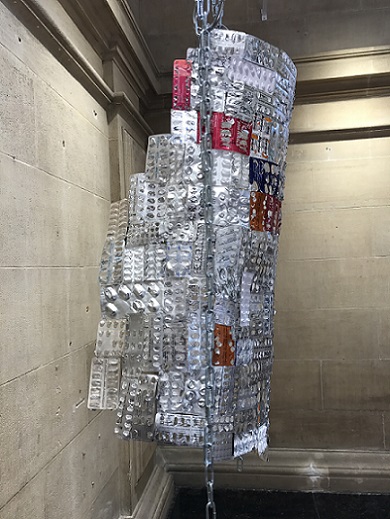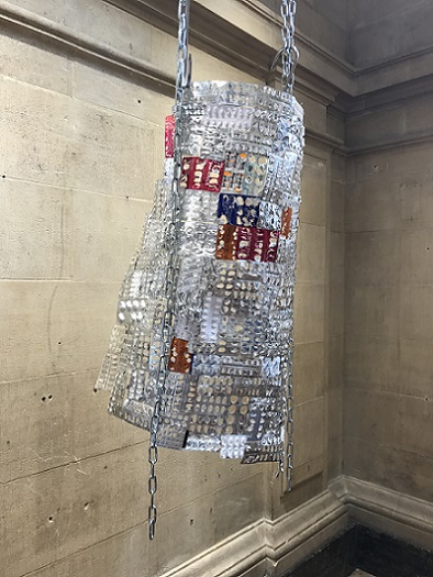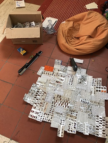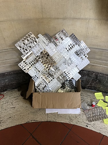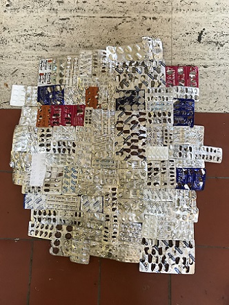 I also found it was a talking point for visitors; I had some poignant conversations about dependence on medication and ill health. They are a provocative material – many people were attracted to the finished piece because it sparkled and then were shocked or delighted when they saw what it was made from.