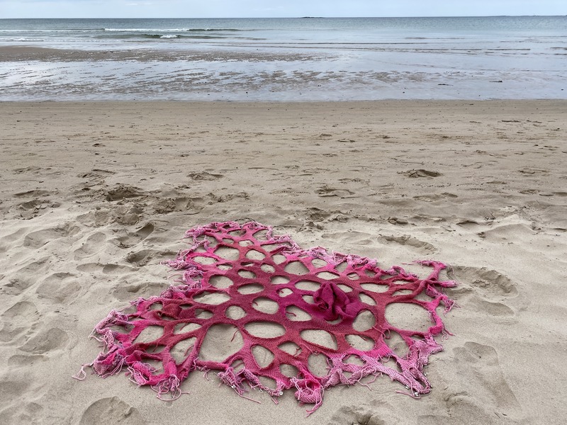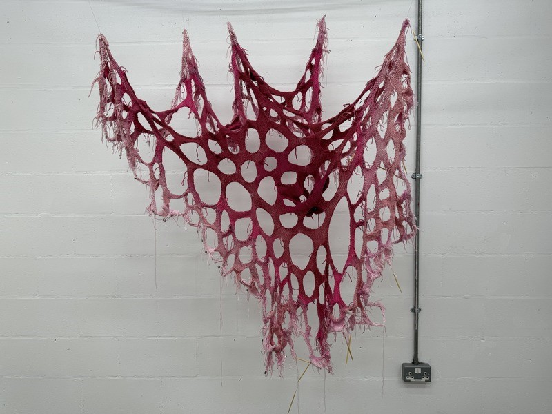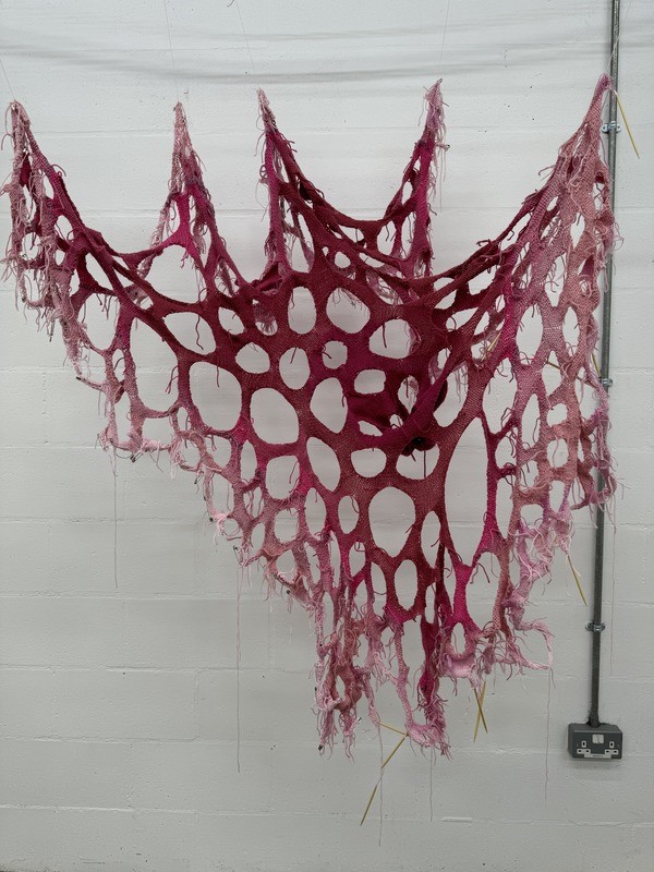 Conscious of my ageing body, this sculptures is knitted as a web or net of interconnecting holes, formless and potentially unravelling.