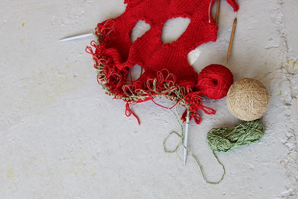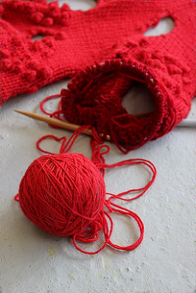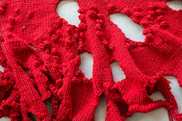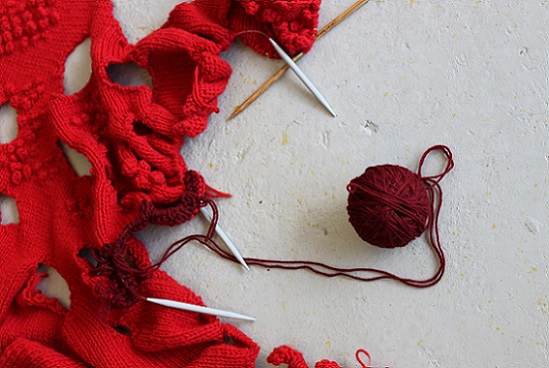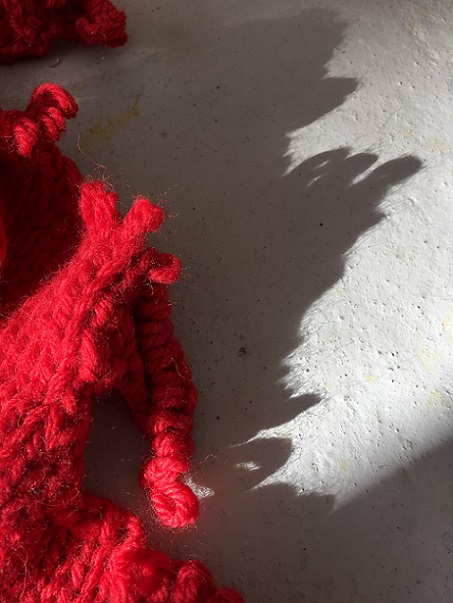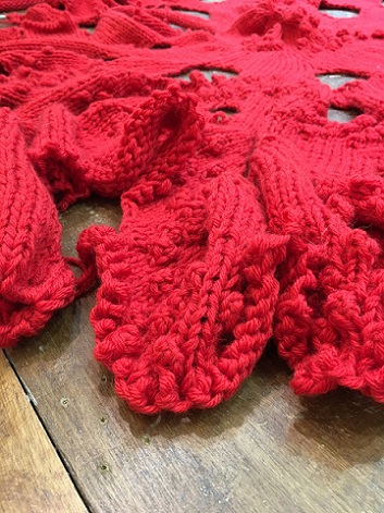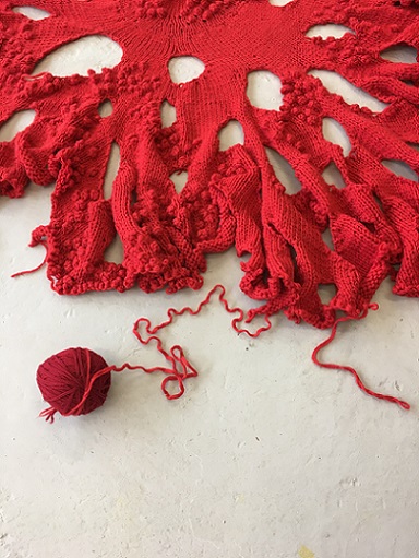 I think, for me, red is the colour of many things – fear, anger, (‘seeing red’), anxiety, mortality…. Knitting with just one colour also means that the form becomes more significant.
