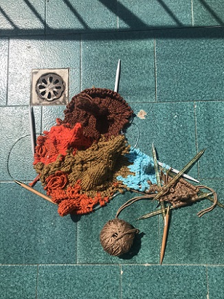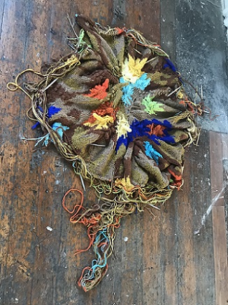Internal monologue was knitted for a joint exhibition with Clare Thatcher. An experiment with sloppy knitting, it was made in response to the forms, colours and textures of Clare's paintings. The exhibition, disquiet, took place at Walcot Chapel in Bath from 18 - 23 September 2018.