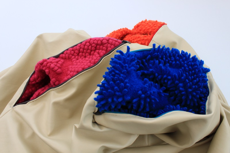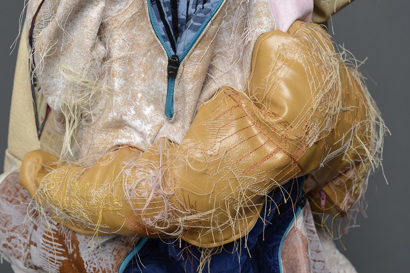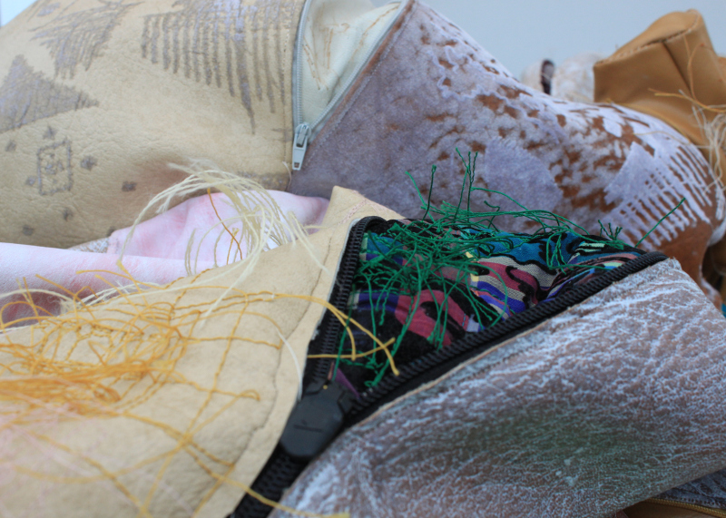 Nobody 2, 2014, detail, imitation leather, felted hand knitting, zips, stitch