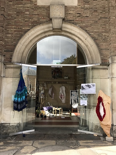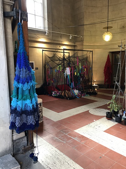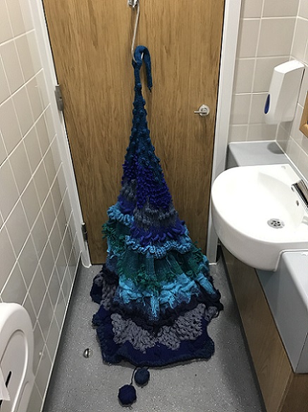 Nobody 3, installed at 'Unravelling: an exhibition of knitting and crochet art',