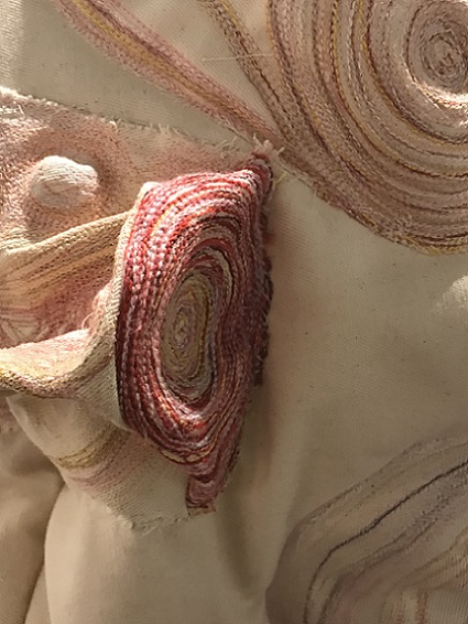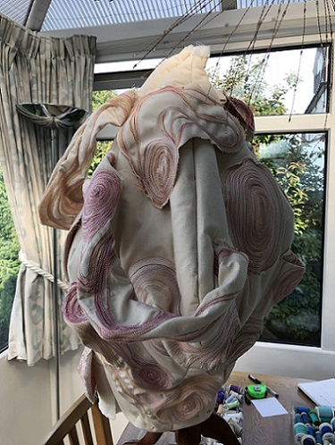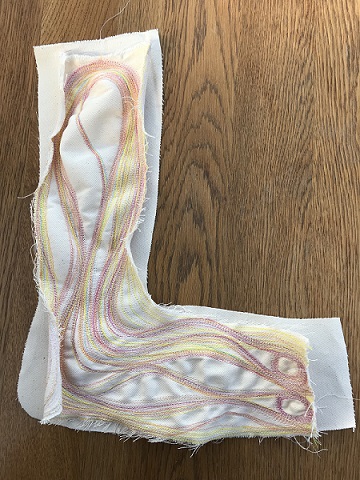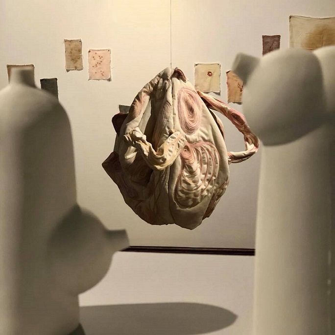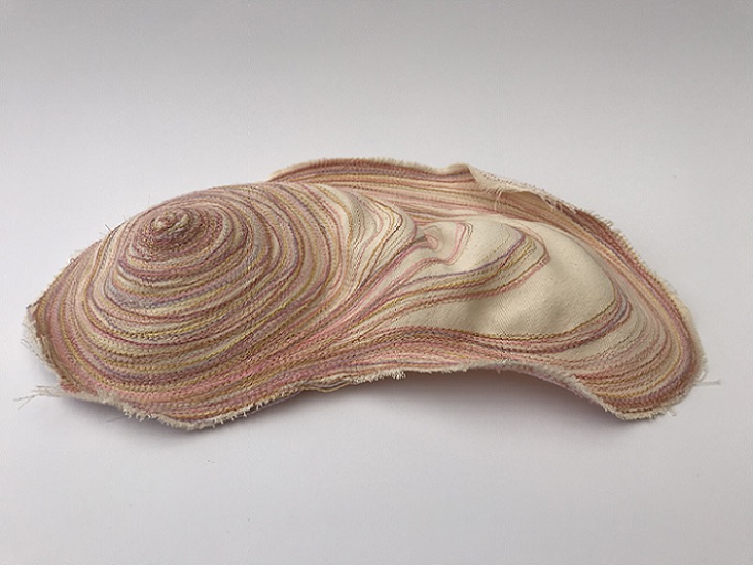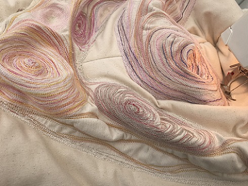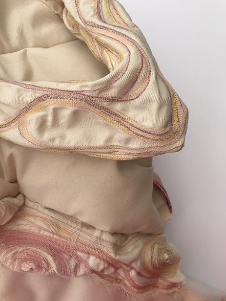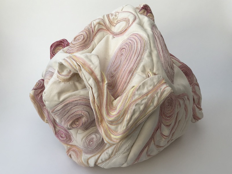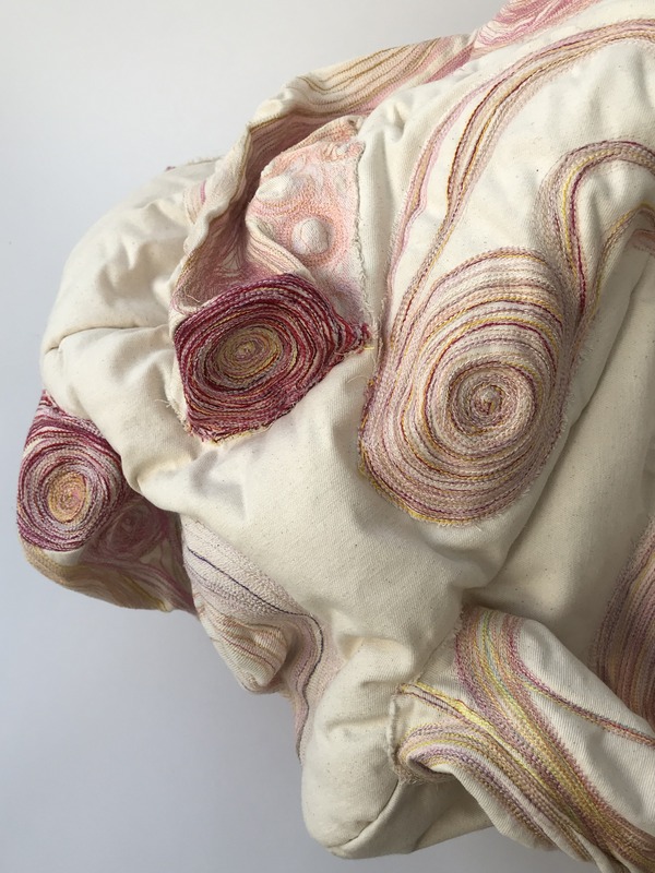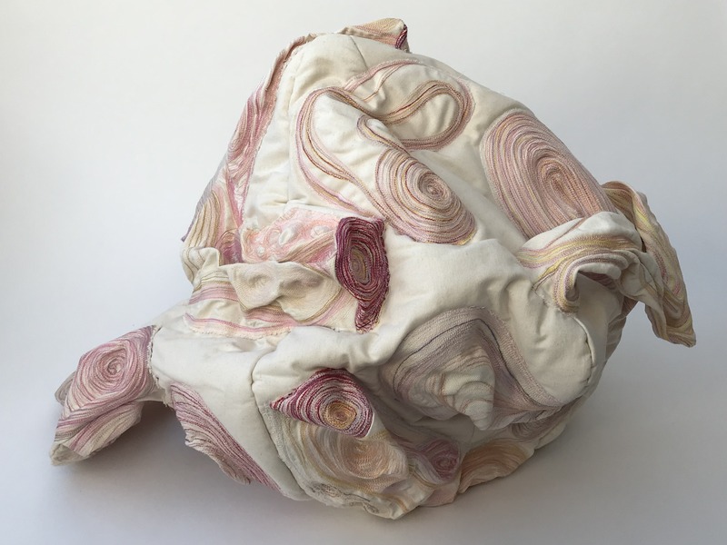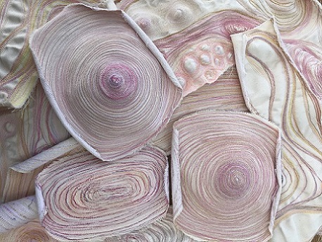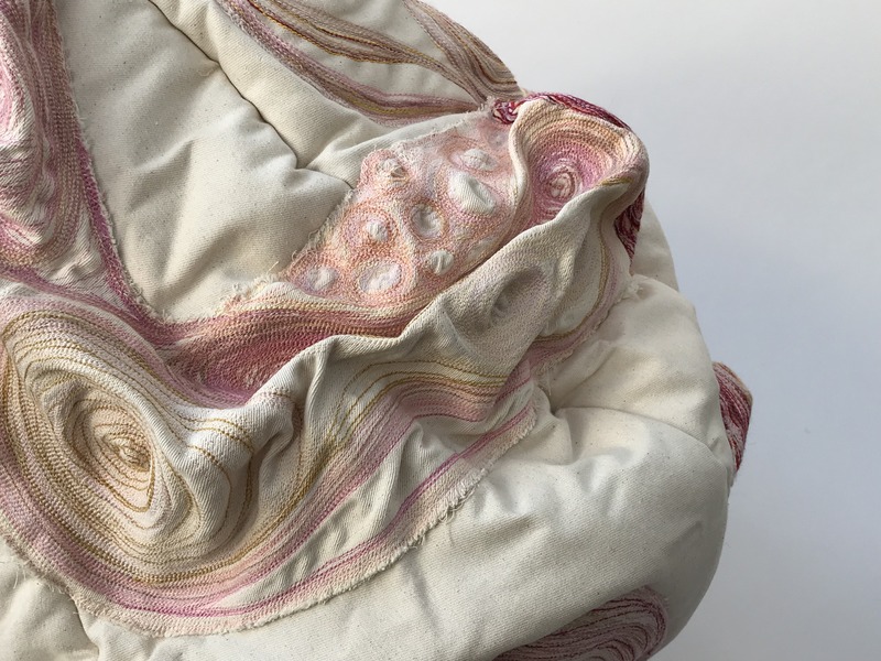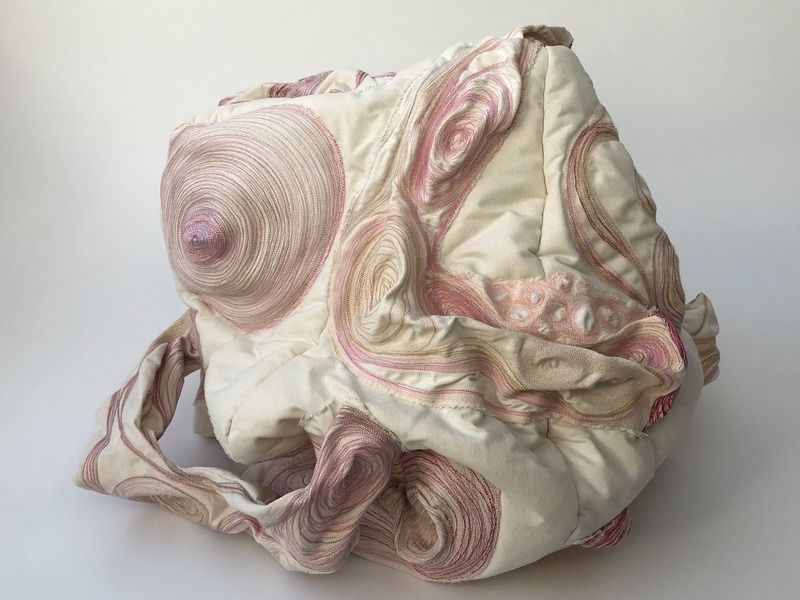 Intensive stitching onto canvas can create sculptural forms, like this breast.