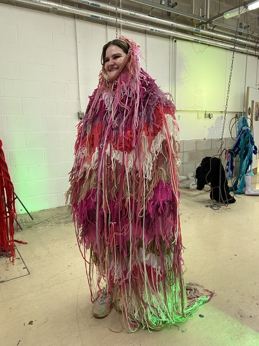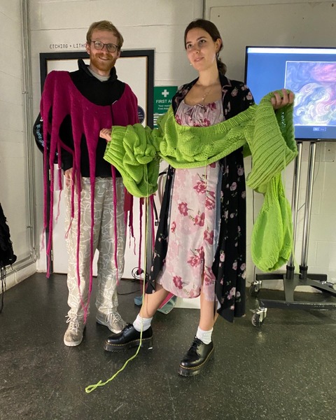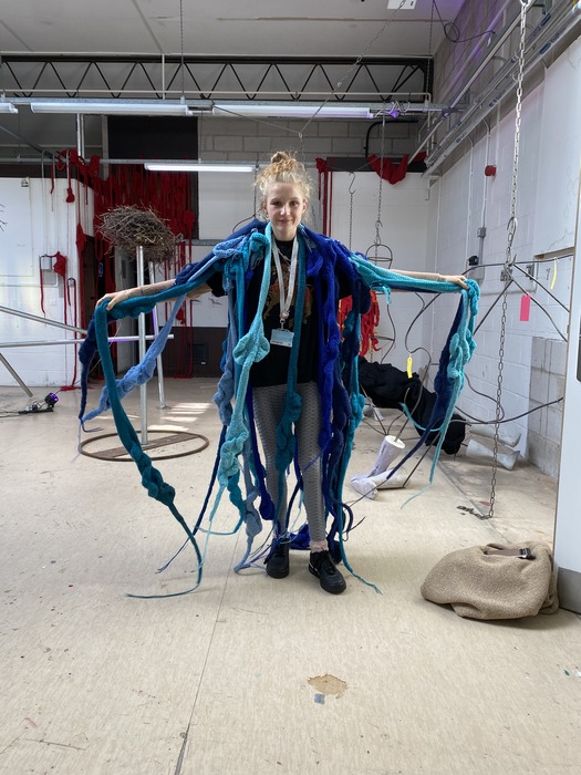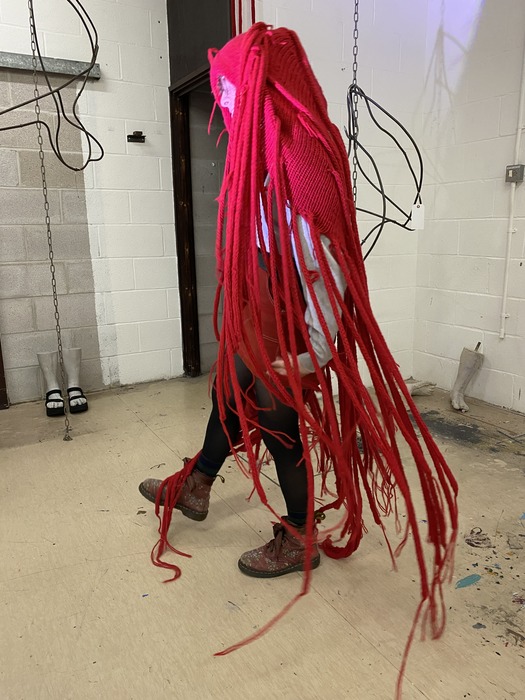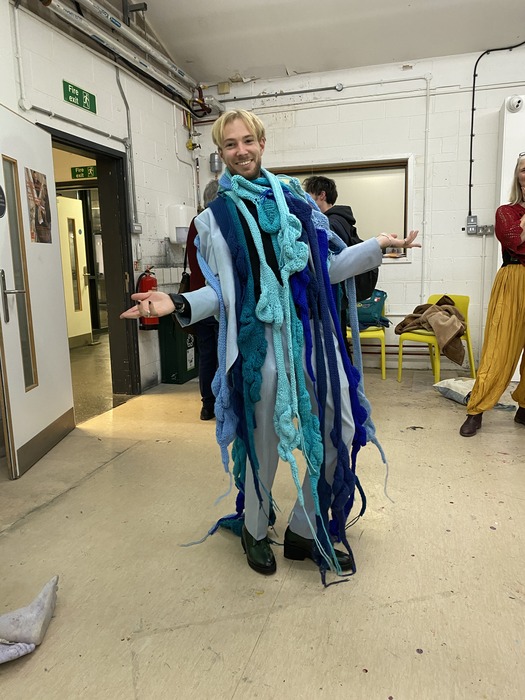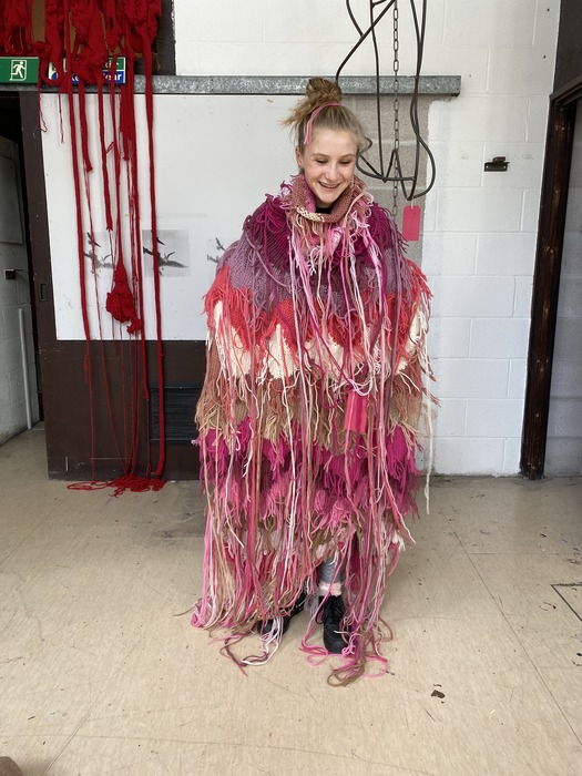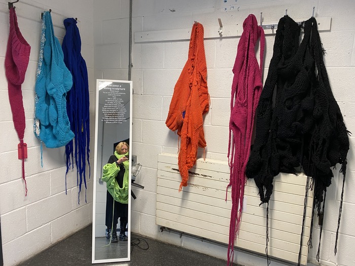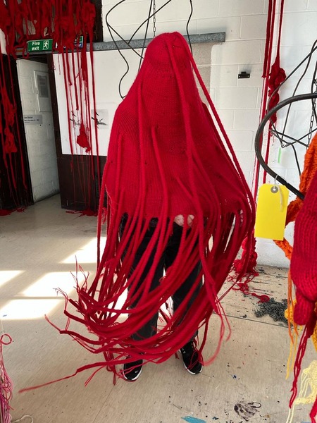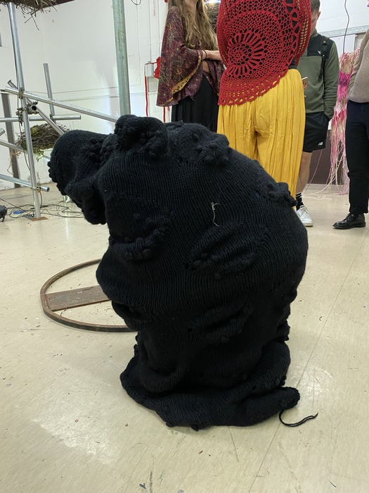 I was delighted to finally be able to invite others to experience the freedom of wearing my Body cocoons, but I was also surprised that I felt rather protective of them at times. Body cocoon 1, especially had been knitted at the start of the pandemic, exclusively at home and had, at that time represented my Self as part of Self and Other. It holds within it the memories of very private and intense thoughts. I am planning to make a different series of wearable sculptures, made specifically to be worn by others, as we tour.