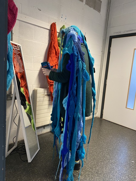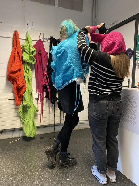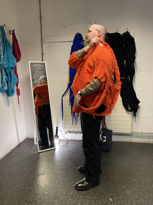 Expanding my research into clothing and identity, visitors were invited to try on a selection of hand knitted, wearable sculptures and to transform themselves into Living sculptures. It was absolutely fabulous to be able to work with the public again and to witness the delight with which all ages explored my sculptures in so many joyful ways. Passive viewers became active participants.